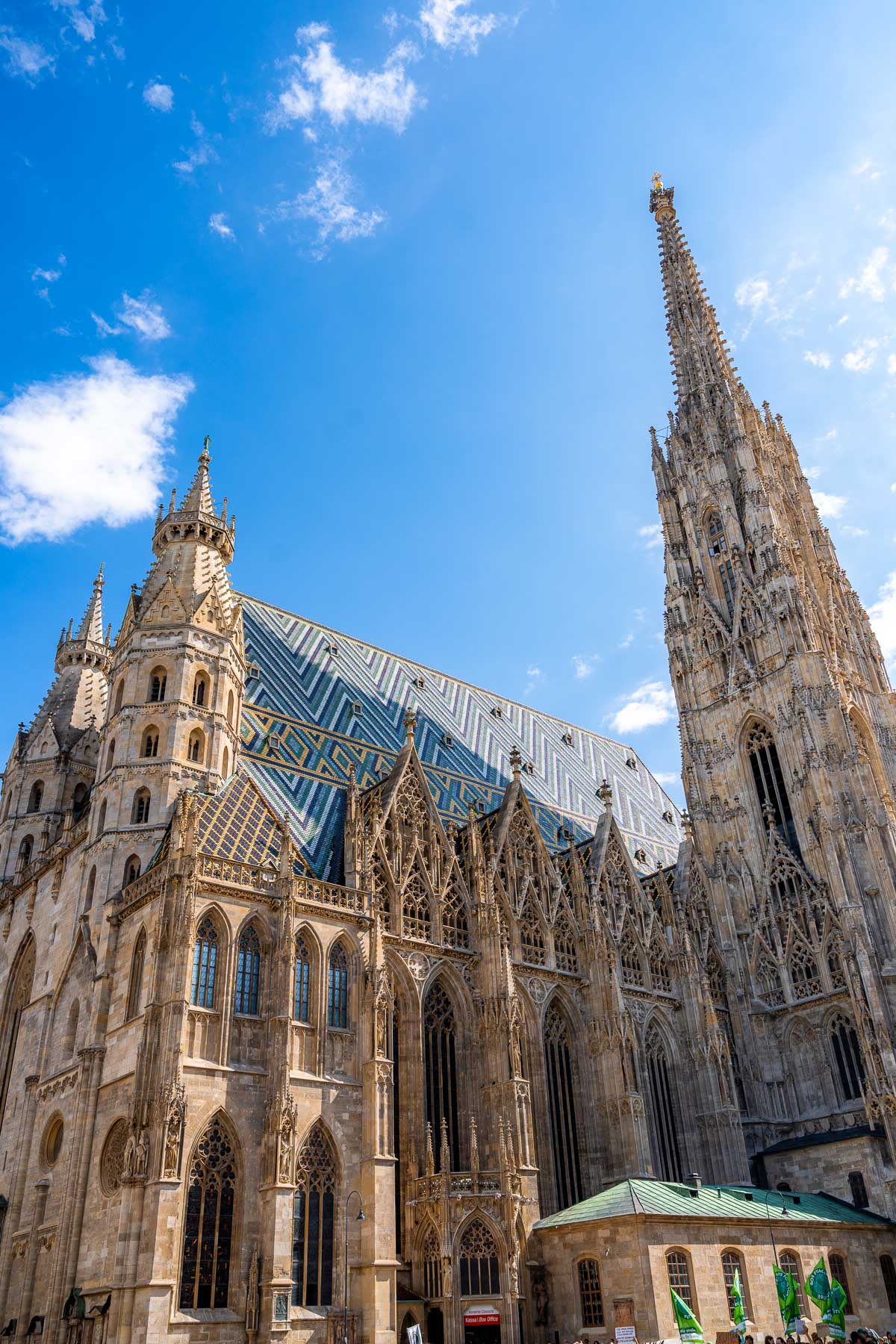 St. Stephen’s Cathedral is the most famous church in Vienna and one of the city’s most recognizable landmarks. Its spire dominates the skyline, and chances are you’ll spot it again and again as you walk around the historic center.