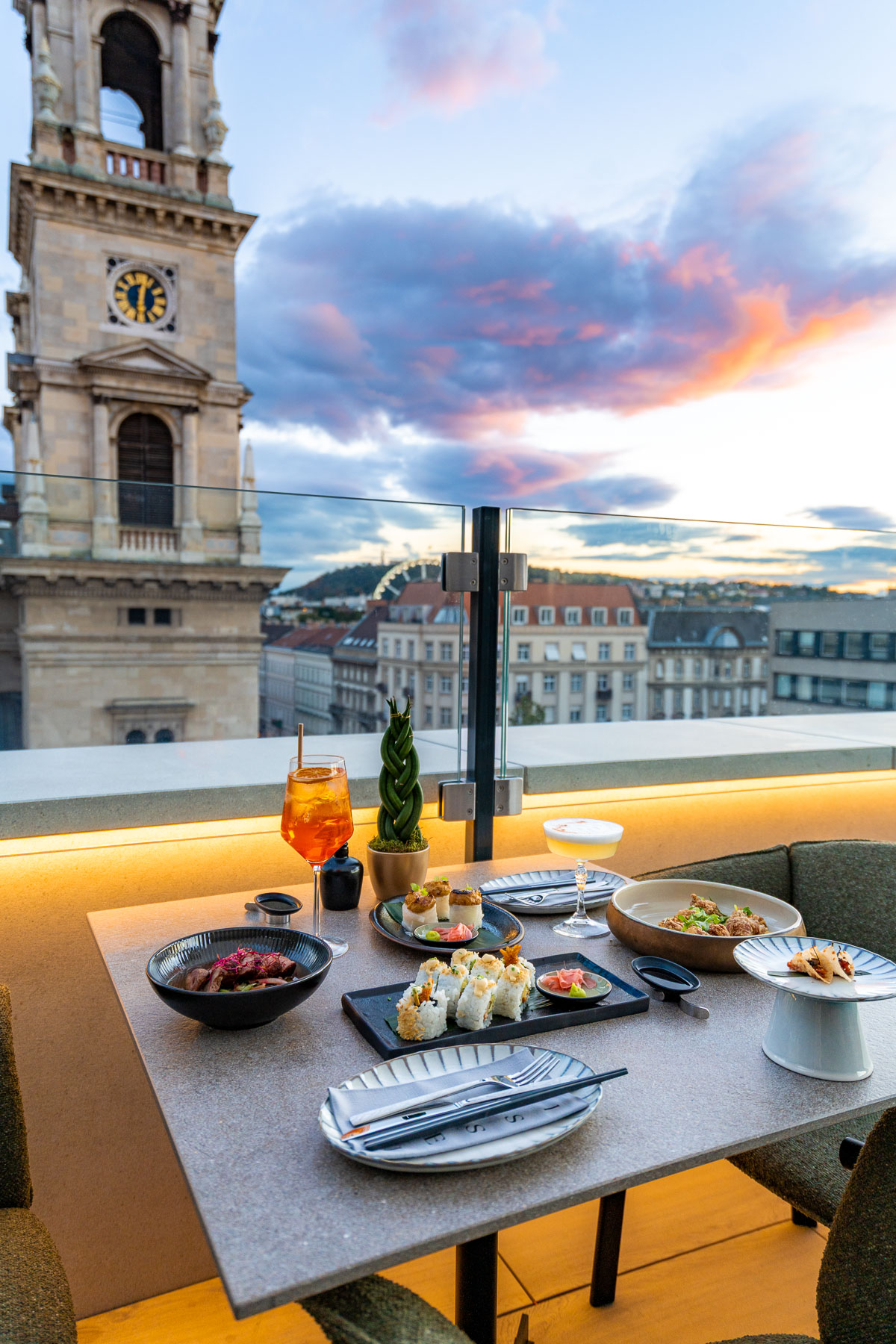 For your final stop of the day, head up to ISSEI Skybar, located on top of the Radisson Collection Basilica, right next to St. Stephen’s Basilica.