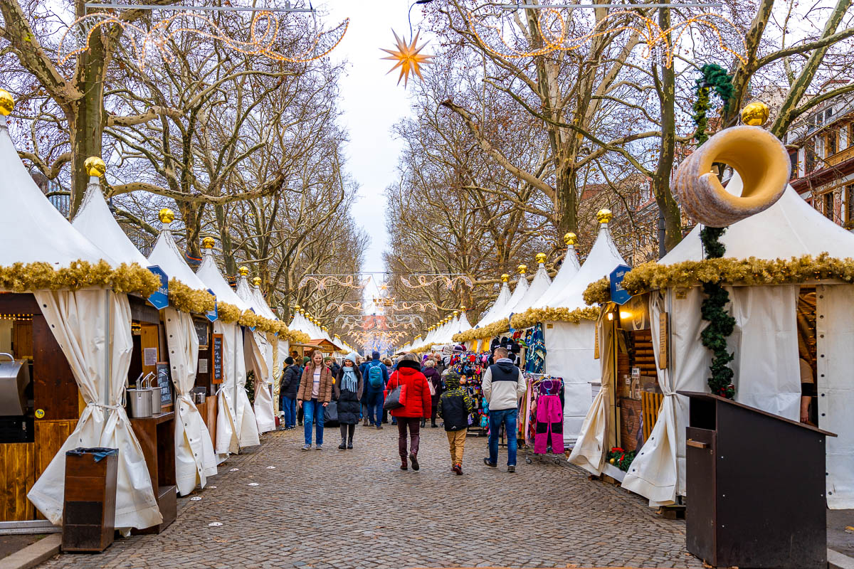 With its wide layout and lighter crowds, it feels more relaxed than the Striezelmarkt, making it a nice change of pace if you’re visiting several markets in one day.
