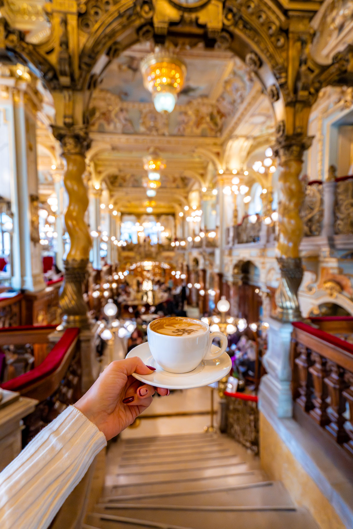 The most famous spot is the New York Cafe, often called the most beautiful cafe in the world. Lines here can be very long, but winter is generally less touristy, so you have a better chance of getting in without waiting forever. It’s still on the pricey side, but even sitting down for a single drink is worth it for the interior alone.